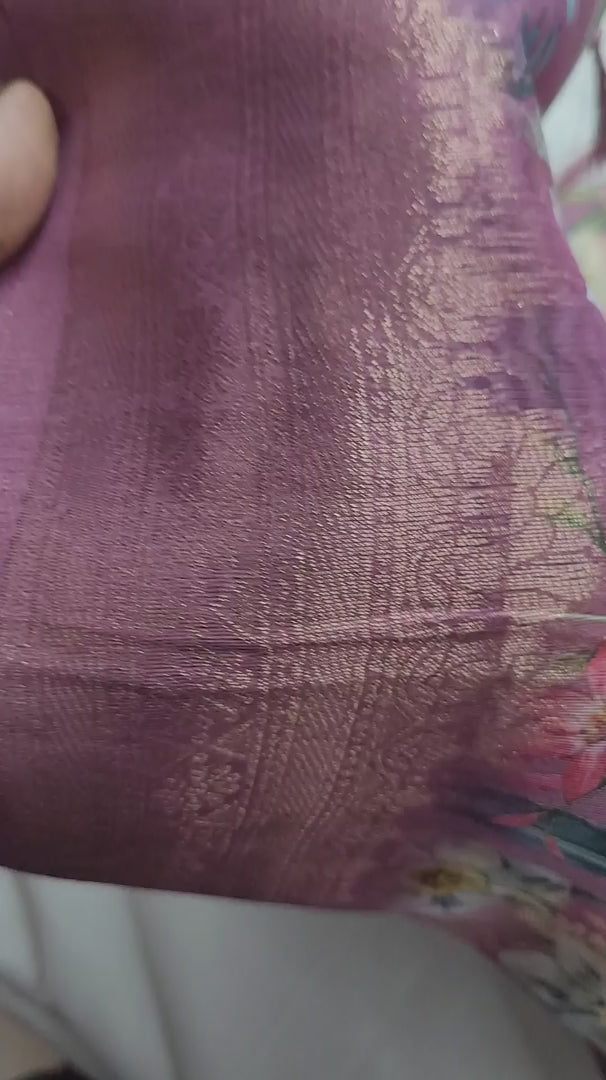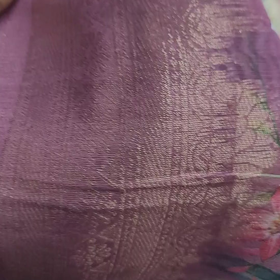 A canvas of subtle dusky pink comes to life with a blooming array of digital floral prints in soft pastel shades. This elegant fancy saree is a celebration of modern design and artistic flair. The body’s delicate floral pattern is beautifully complemented by a woven border and pallu, which feature intricate traditional motifs in the same dusky pink hue. The rich texture of the weave provides a sophisticated contrast to the softness of the print, making this saree a work of poetic beauty.