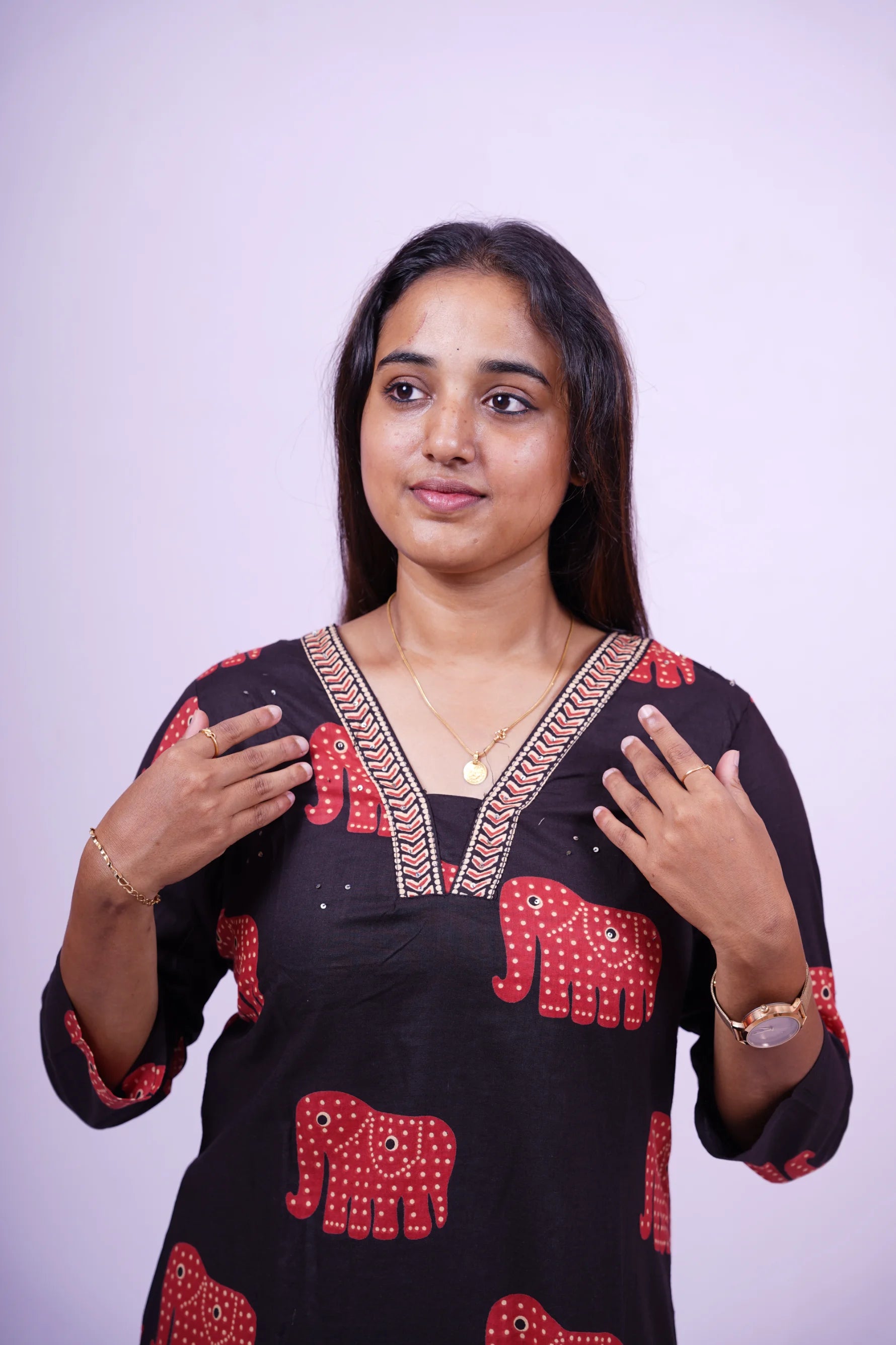Summer Style Black with Red Elephant Motif 2-Piece Kurthi Set | R2-004