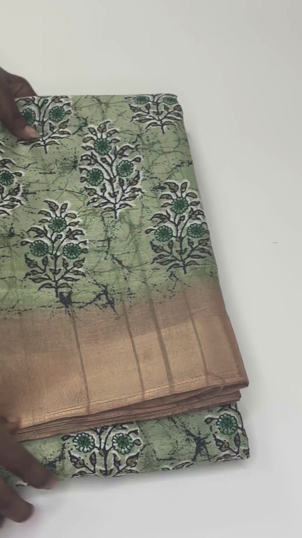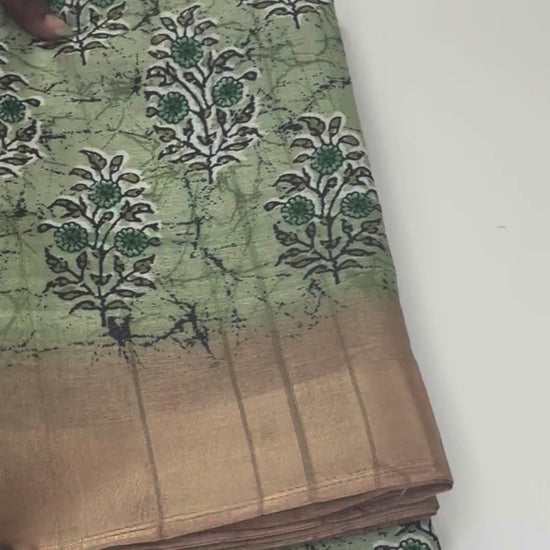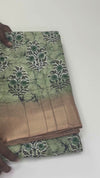 Green Pastel Bloom – Matka Silk Saree with Digital Print | K2-001