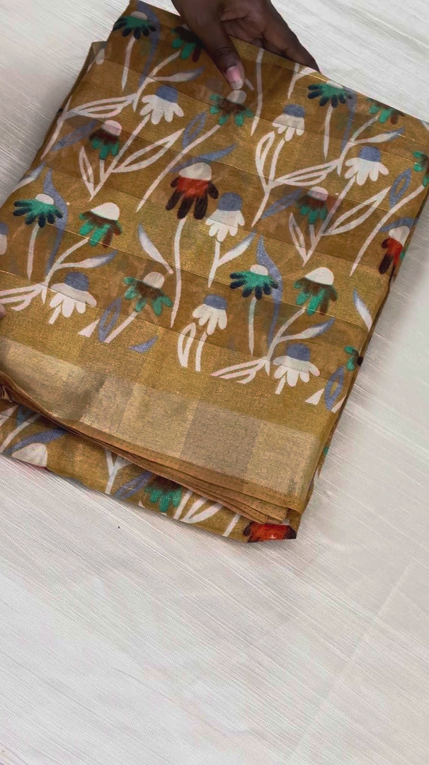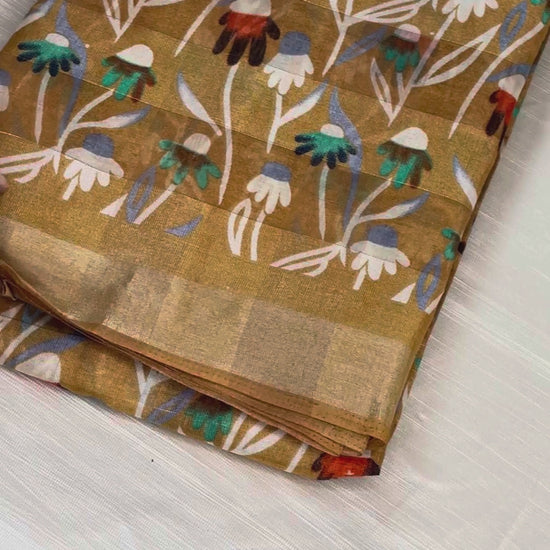 Kankavati Bloom in Mustard Gold – Digital Print Matka Silk Saree | L1-002