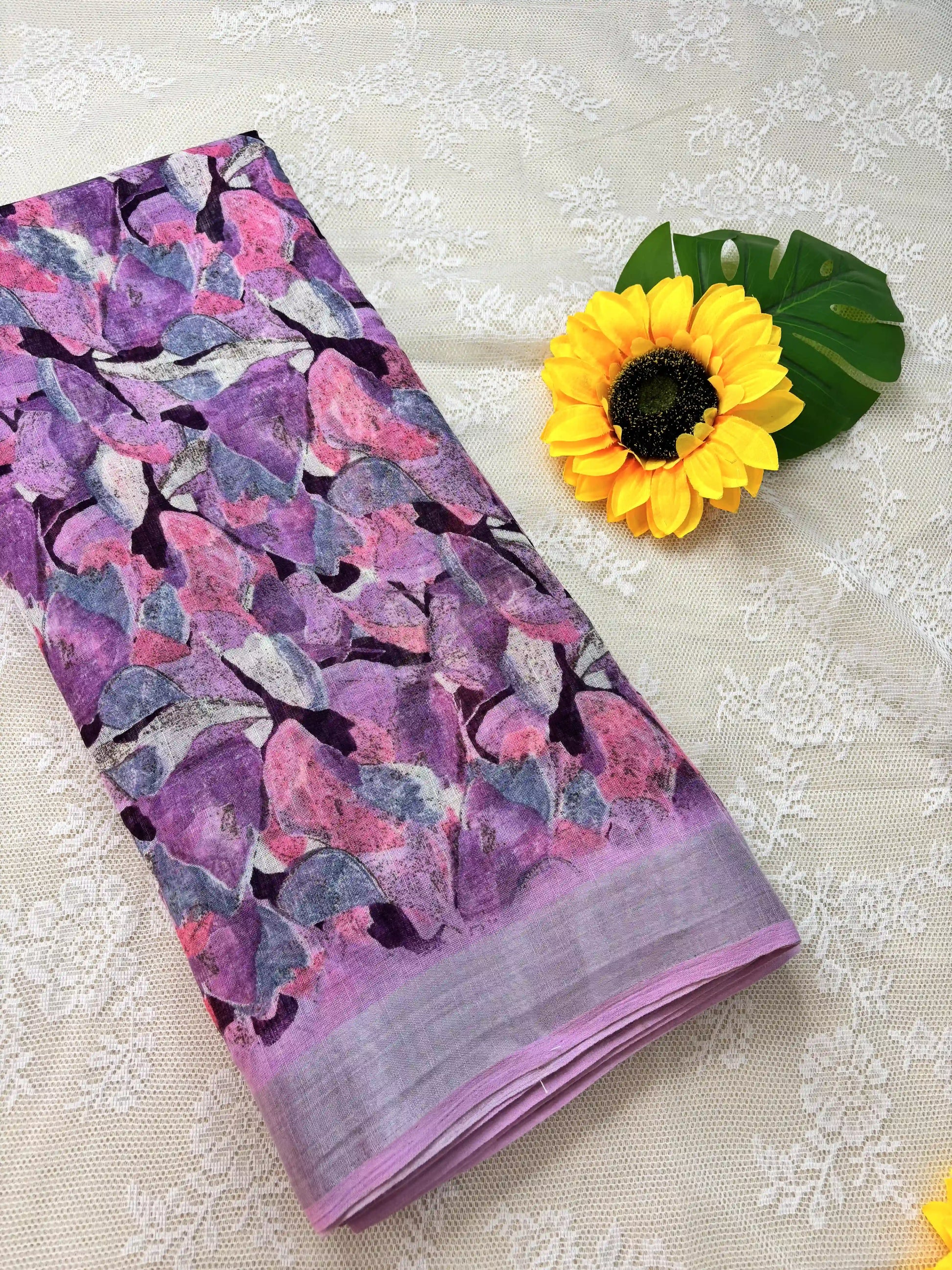 Pink Semi Linen Cotton Floral Print Saree