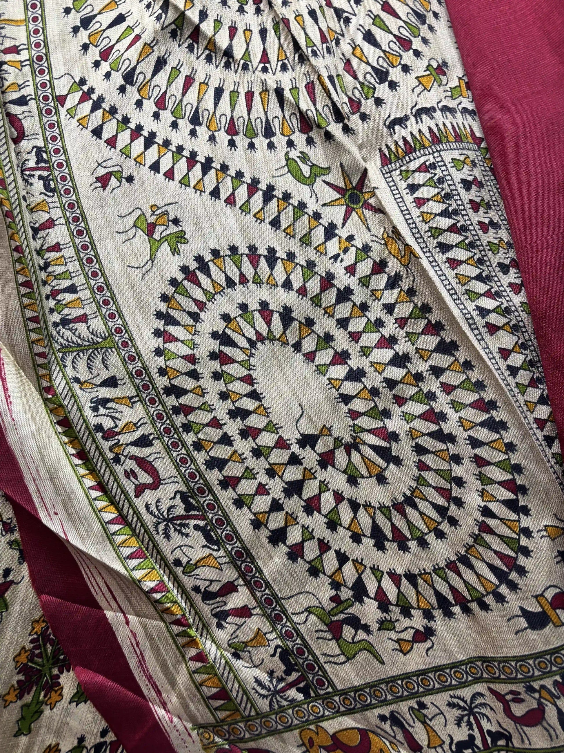 Silk Soft Cotton Saree with Concentric warli print and pink blouse