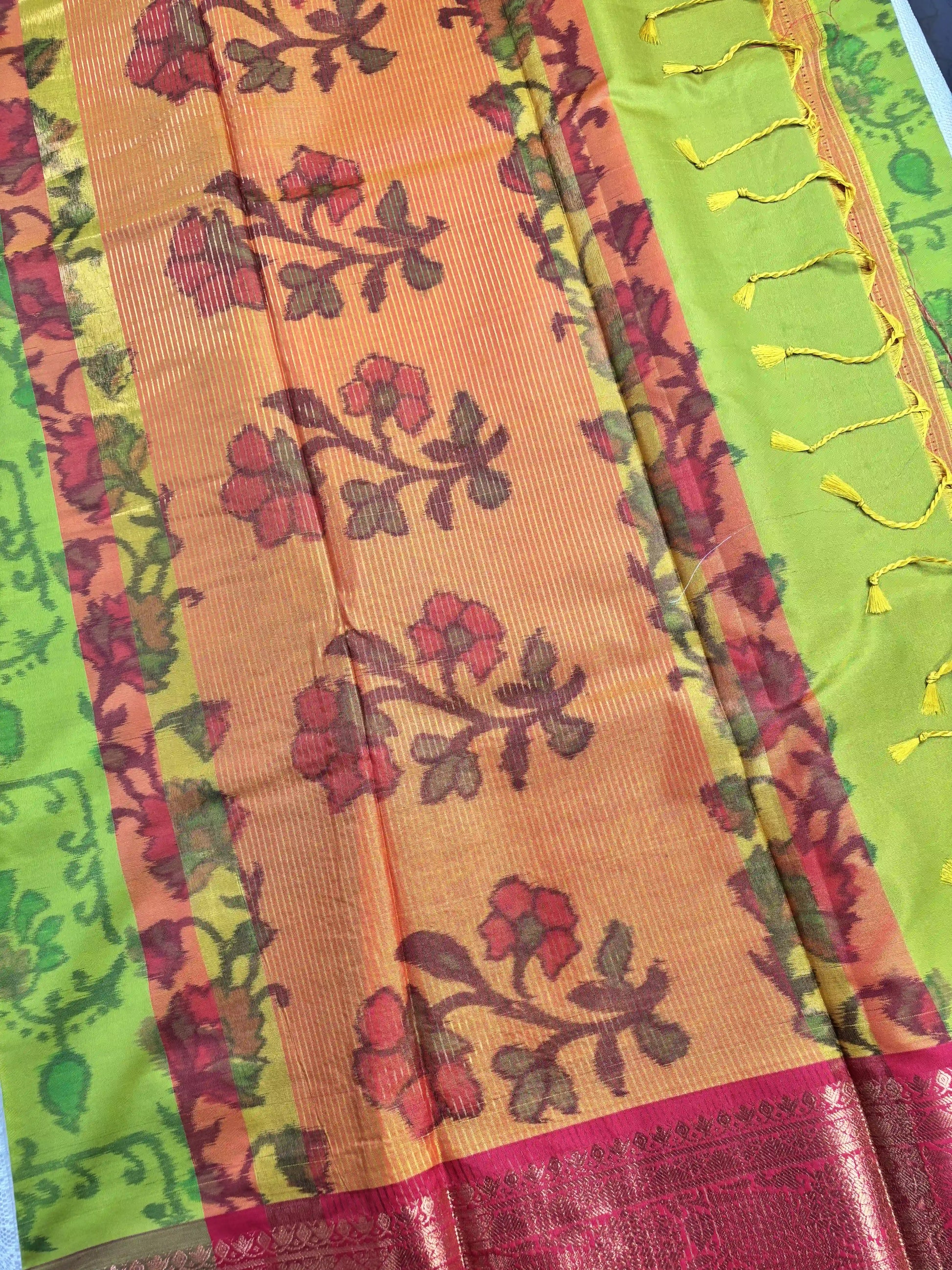 Green Floral Print - Pochampalli Soft Silk Saree