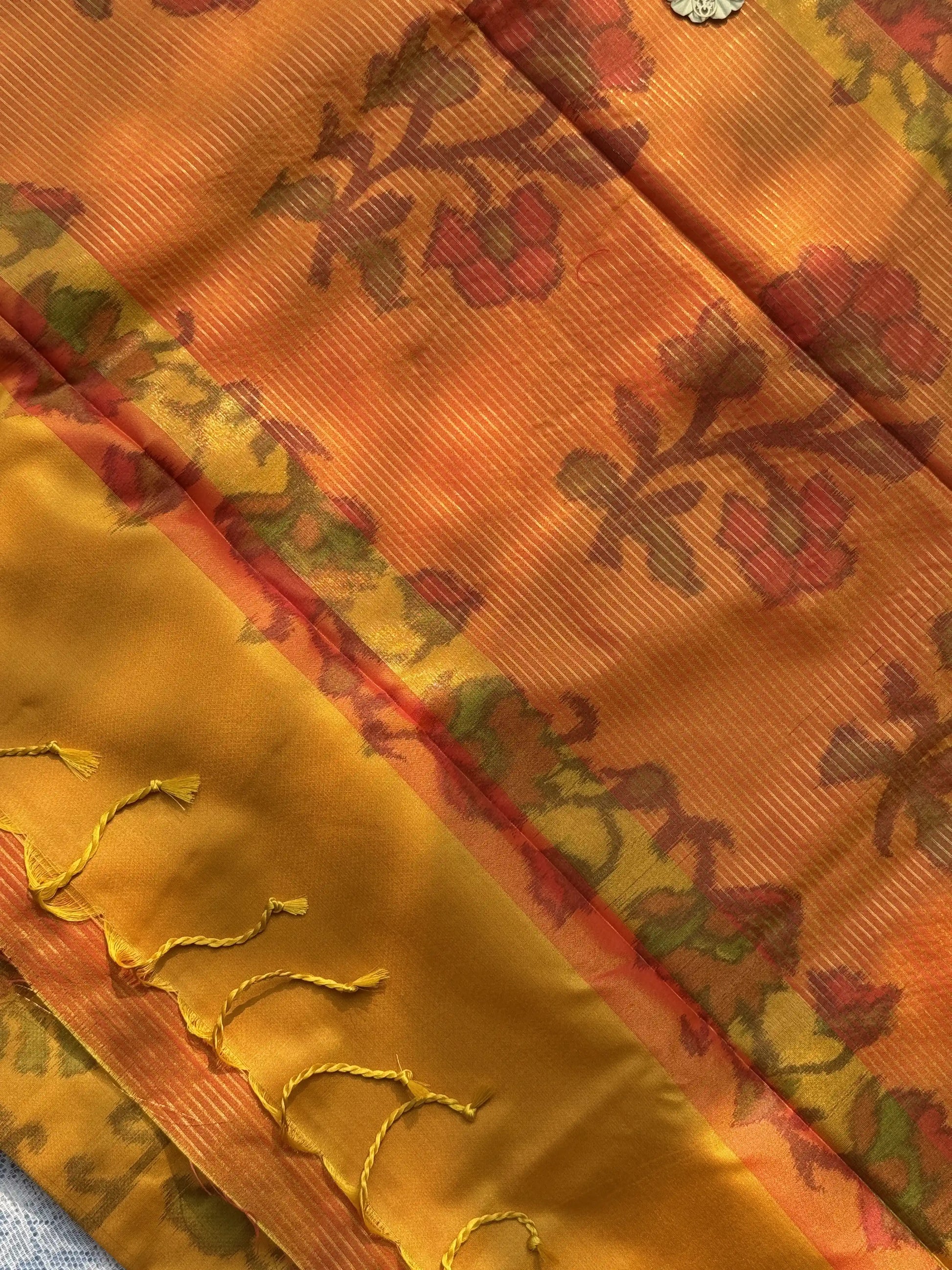 Yellow Floral Print - Pochampalli Soft Silk Saree