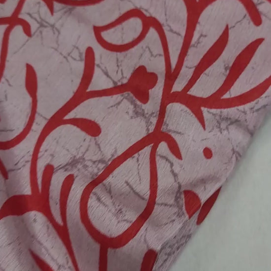 Vibrant Red Saree with Bold Prints and Woven Border| Semi-Dola Silk | P4-004