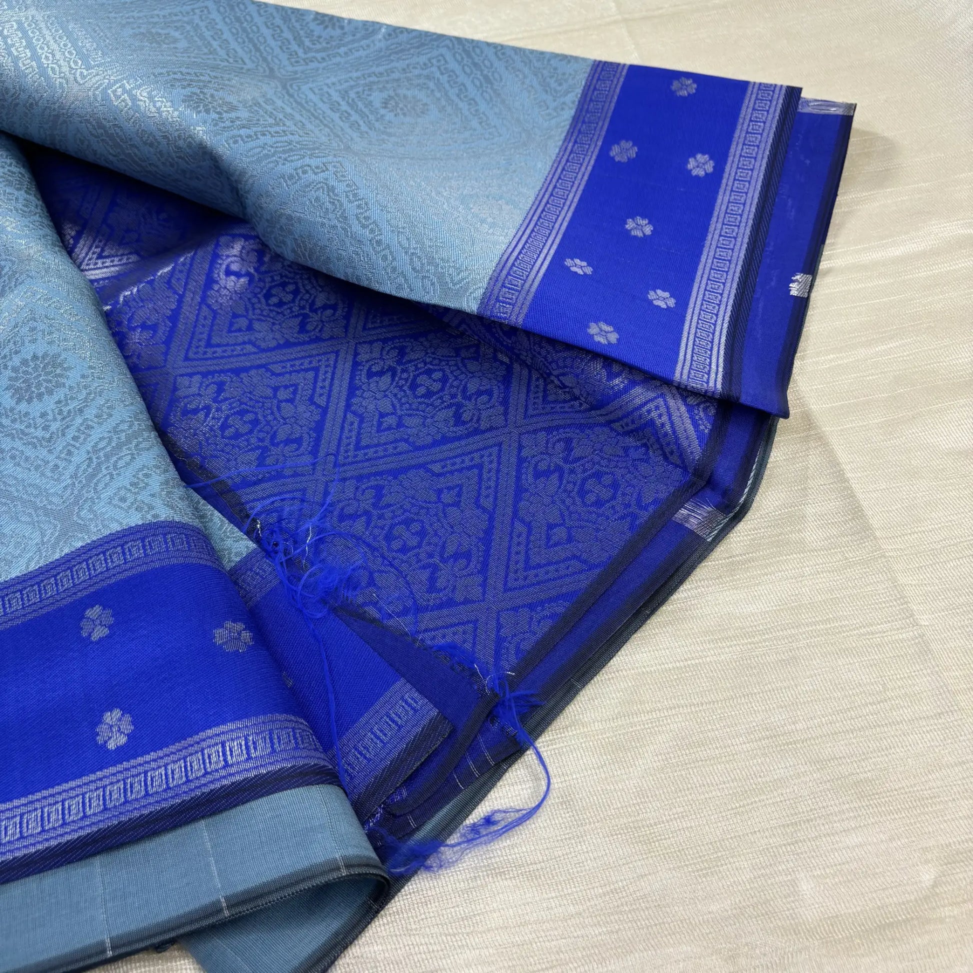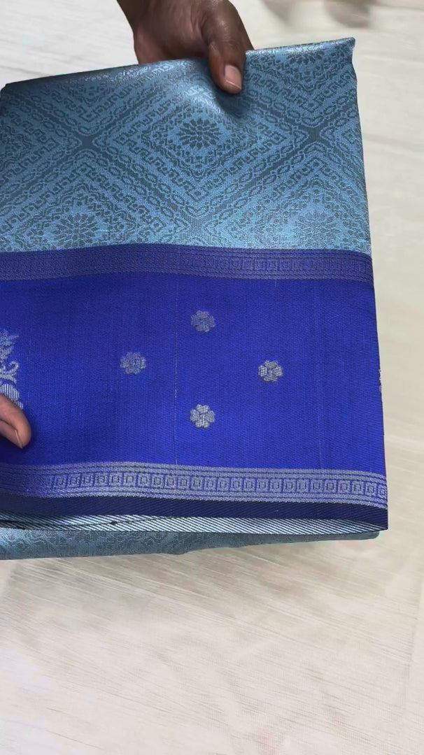 - Color: Silver Blue with Violet Pallu