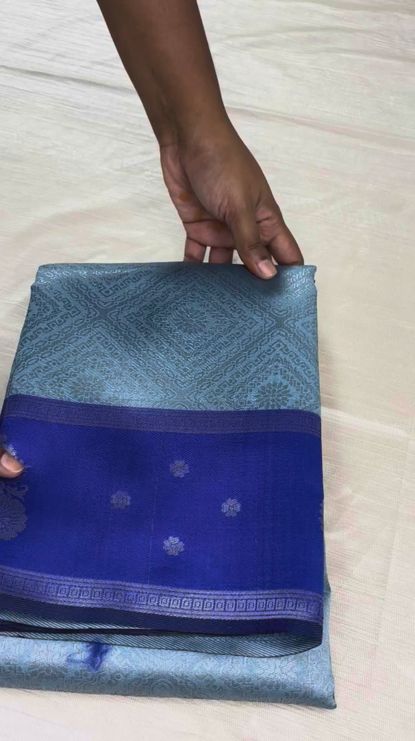 Silver Blue Serenity Saree with Royal Violet Pallu | M2-003