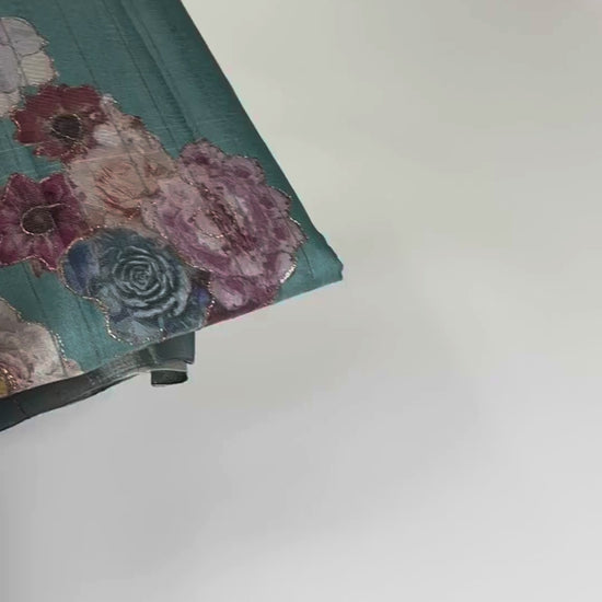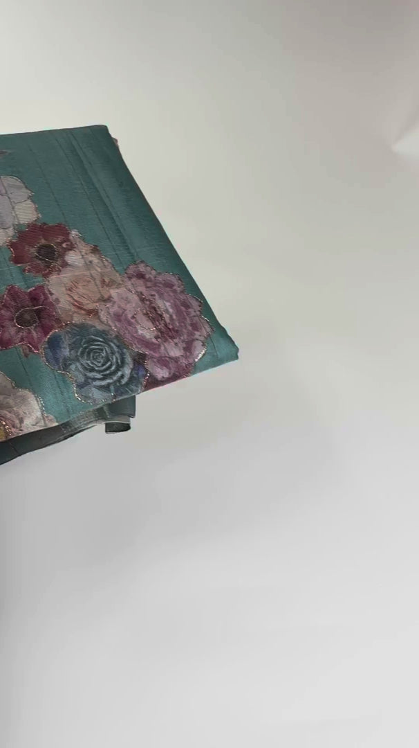 Tissue Silk Saree with Digital Floral and Ari Work (Light Forest Green) | K3-008