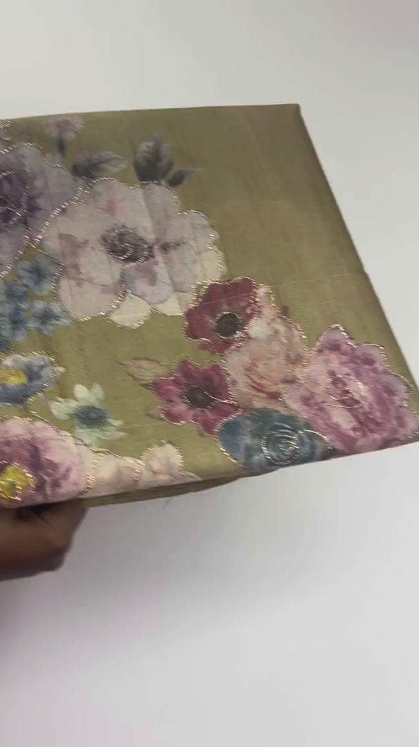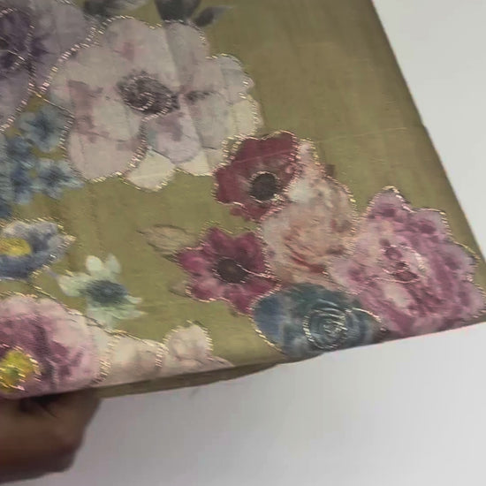 Tissue Silk Saree with Digital Floral and Ari Work (Light Olive Green) | K3-003