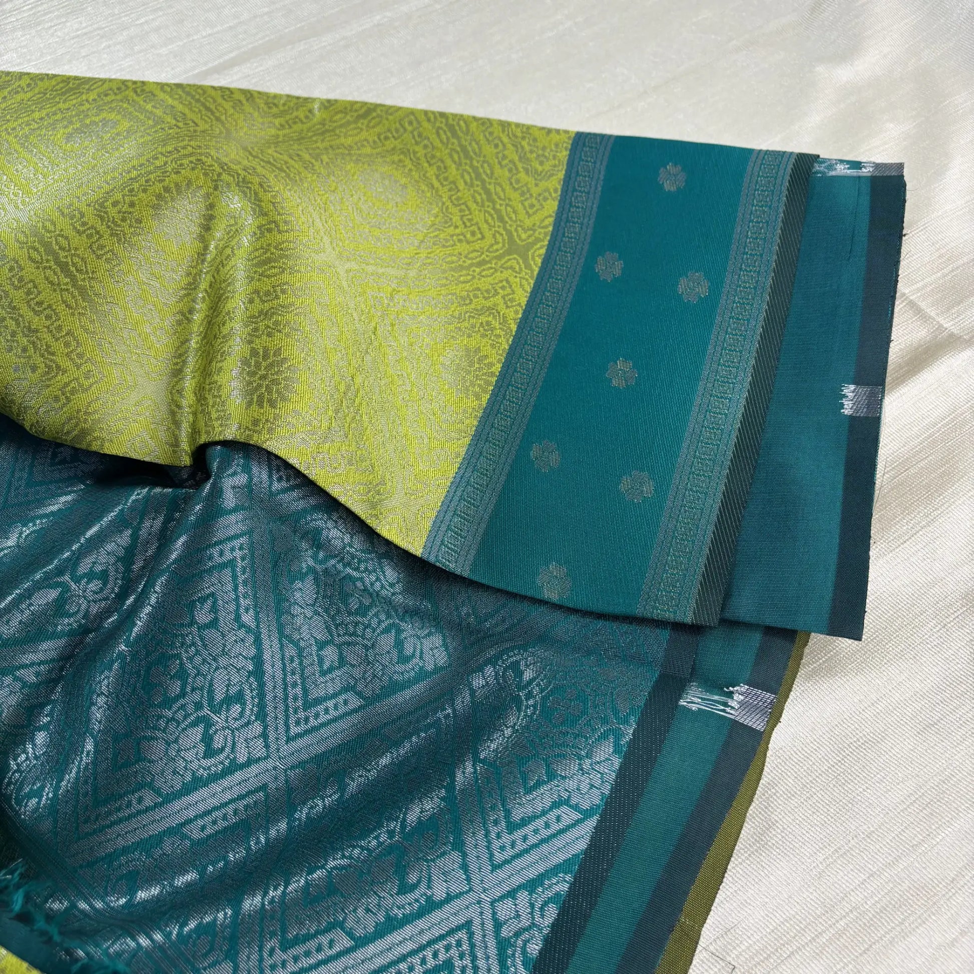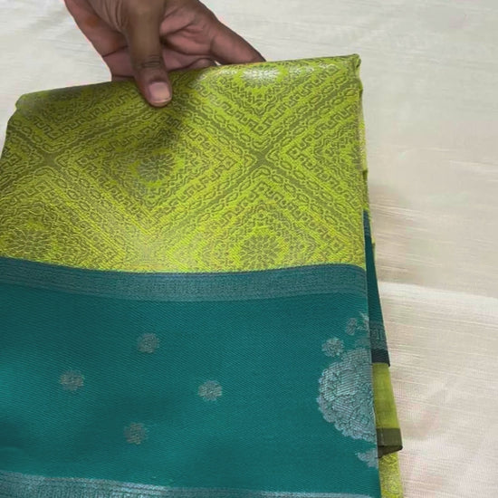 Color: Parrot Green with Teal Blue Pallu